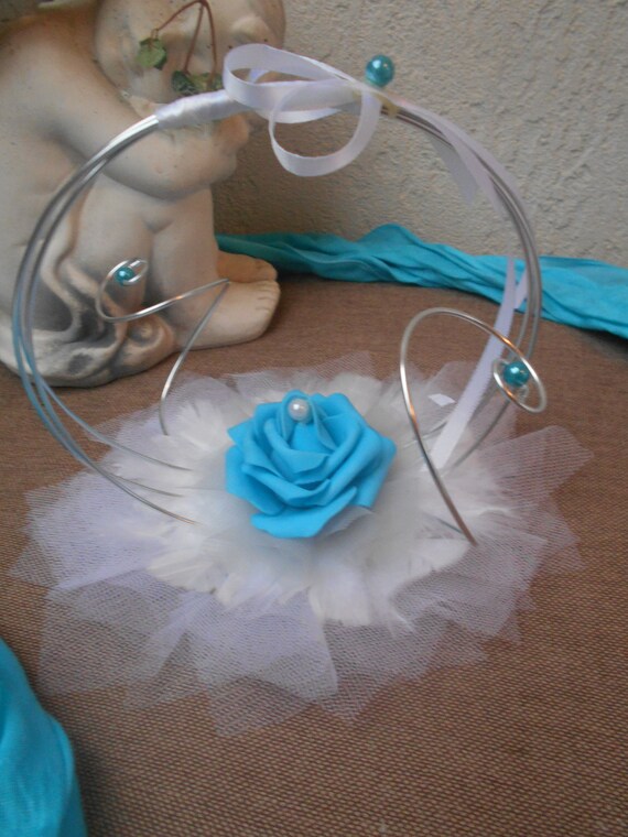 Original Ring Pillow White Turquoise And Silver Wedding Etsy