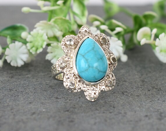 Turquoise Ring Turquoise White Topaz Ring Silver Ring Etsy