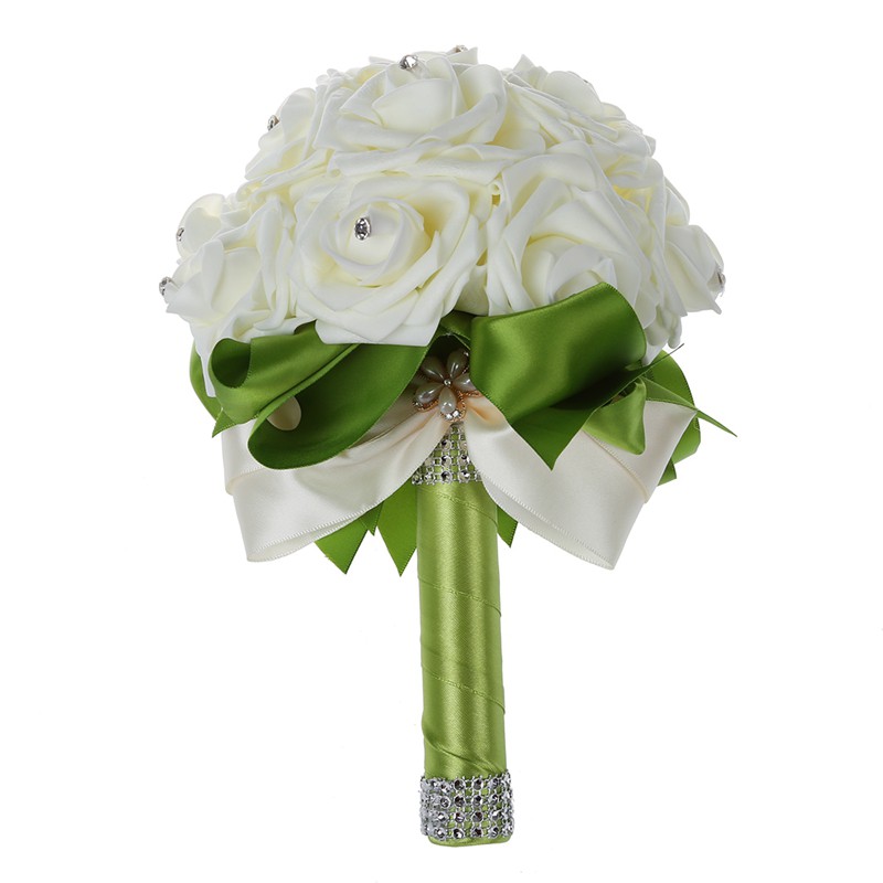 Beautiful Wedding Bouquet Bridal Bridesmaid Flower Green Ribbon