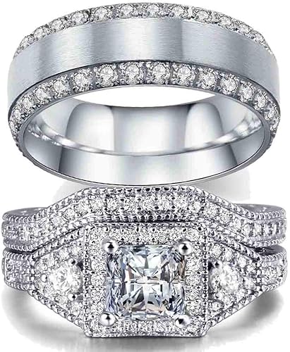Mensring Couple Rings White Gold Filled Princess Cut Cz Womens