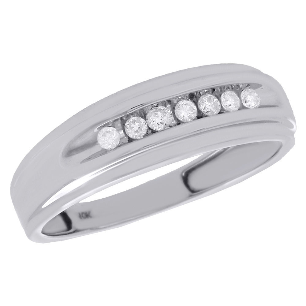 10k White Gold Channel Set Diamond Wedding Band Mens Engagement