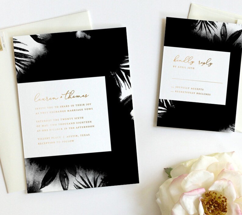 Black White Wedding Invitation Modern Wedding Invitation Etsy