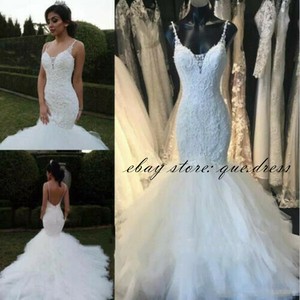 Sexy Spaghetti Straps Mermaid Wedding Dress Beaded Lace White