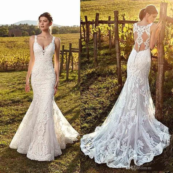 Vestido De Noiva White Backless Lace Mermaid Wedding Dresses 2020