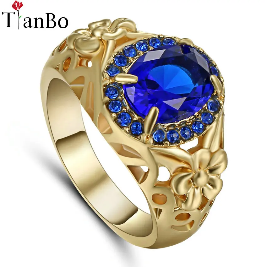 Tianbo Fashion Female Red Blue Crystal Ring Size 9 Black White