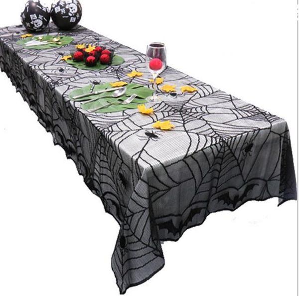 Celebrate Halloween Black Lace Spider Web Tablecloth Oblong Table