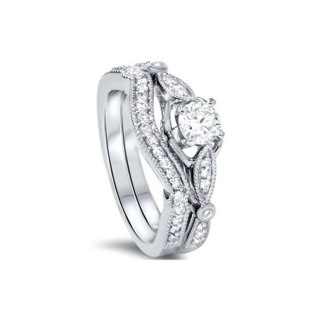 3 4ct Diamond Vintage Engagement Ring Set White Gold Round