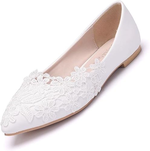 Women Ballet Flats White Lace Wedding Shoes Flat Heel Casual Shoes