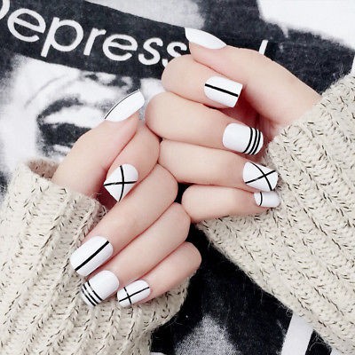 24pcs False Nails Fashion Artificial Nail Tips Manicure Black