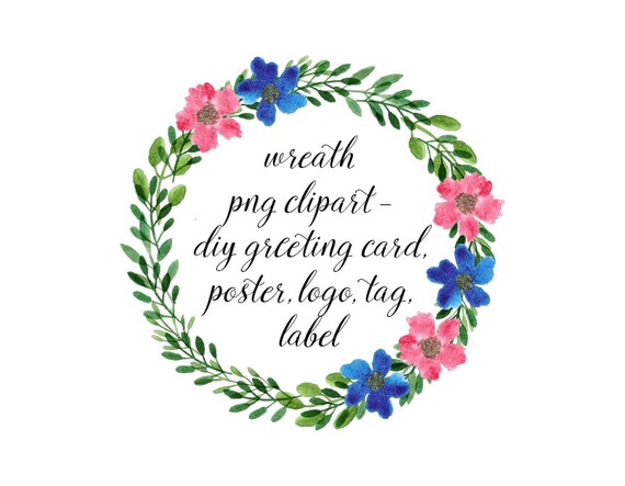 Watercolor Wreath Clipart Pink Blue Flowers Green Leaves Frame Etsy