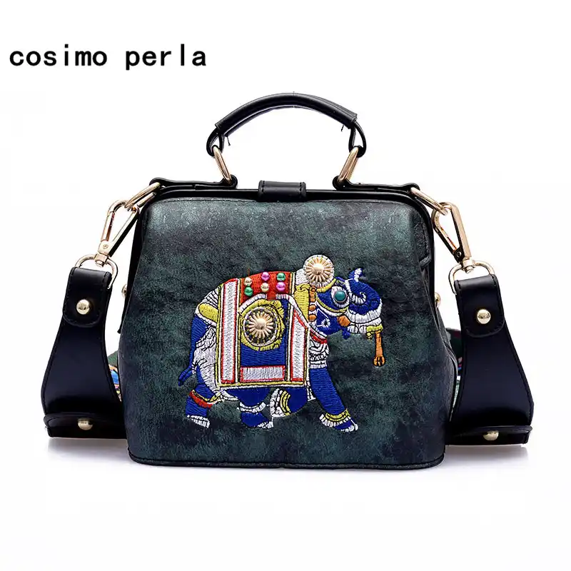 Ethnic Pu Leather Elephant Doctor Handbags Embroidery Design