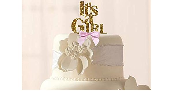 Its A Girl Baby Shower Super Gold Glitter Elegant Cake Decoration