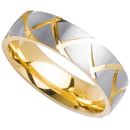 Men S Two Tone Satin Finish Wedding Band In 14k Yellow And White