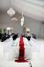 Wedding decor red and white. Use it as a main color through tablecloths and table overlays or as an accent with napkins and table runners. Red black white wedding evelyn.