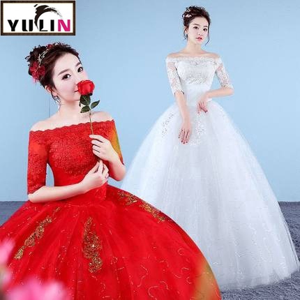 Bride Wedding Dress Women Red White Embroidery For Weddings