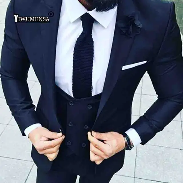 Costume Homme 3 Pieces Navy Blue Wedding Suits For Mens Custom