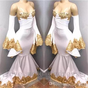 Vintage White And Gold Mermaid Prom Dress Arabic Long Evening
