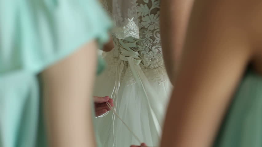 Corset Wedding Dress Close Up Preparation Stock Footage Video