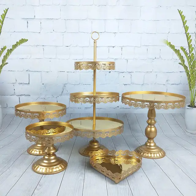 Online Shop 5pcs Set Mirror Cake Stand Wedding Table Crystal Gold