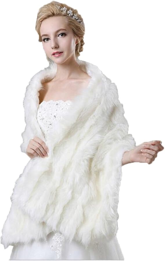 Kelaixiang Long Fur Off White Bridal Wedding Shawl Wrap Capes At