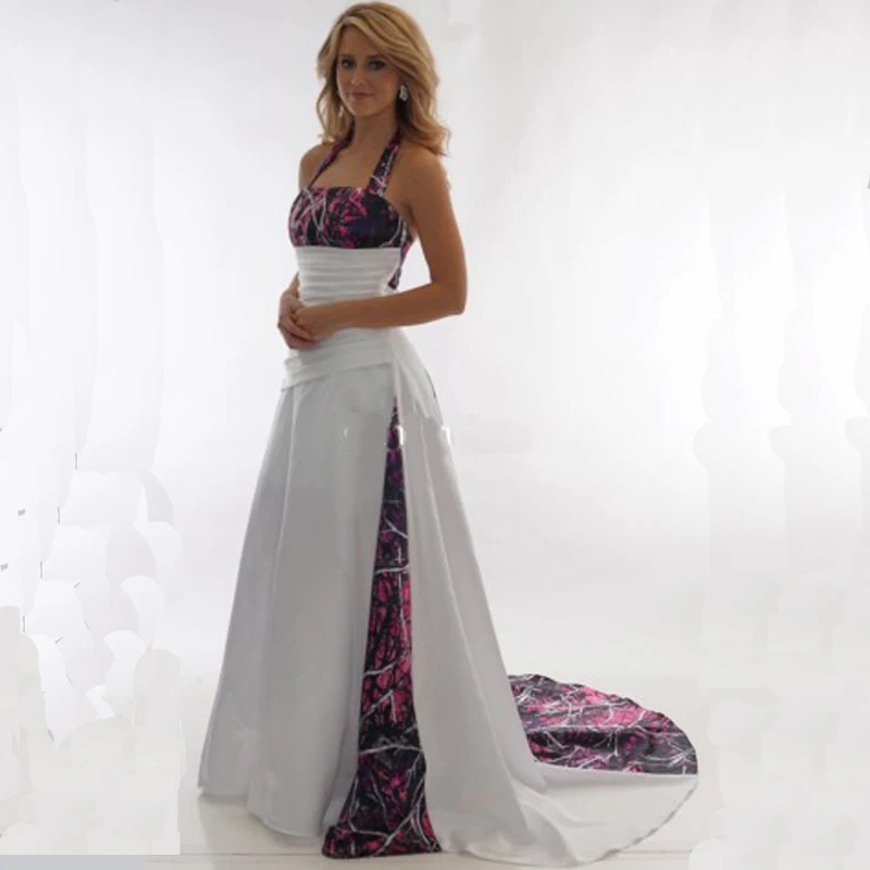 Halter Muddy Girl Camo Wedding Dresses 2019 Camouflage Bridal