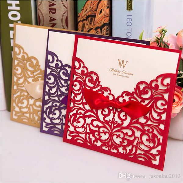 Laser Cut Wedding Invitations 2017 Purple Gold Red White Wedding
