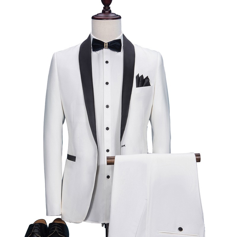 White Suit Men Slim Fit Shawl Lapel Wedding Dress Suits For Men