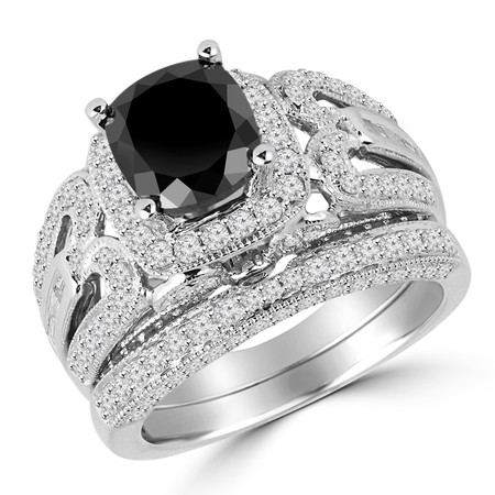 Black Diamond Bridal Set 1 2 Ct Tw Round Cut 14k White Gold