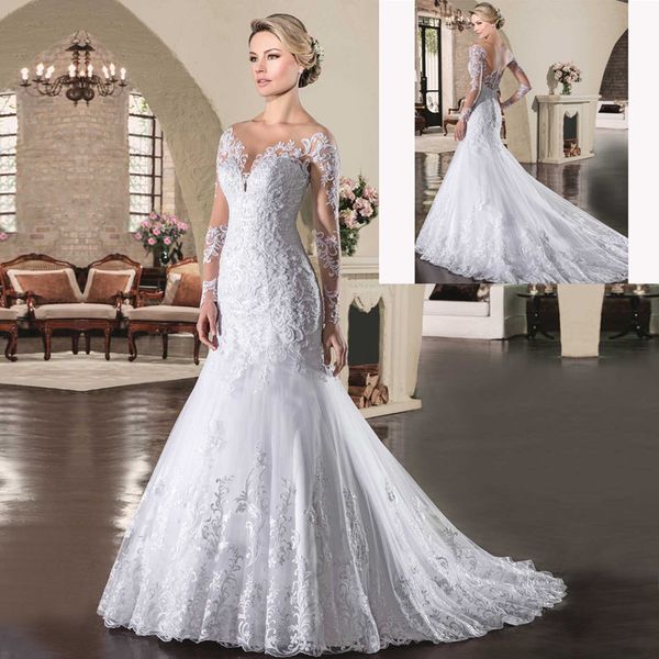 2019 Sexy White Beads Lace Mermaid Wedding Dress V Neck Long