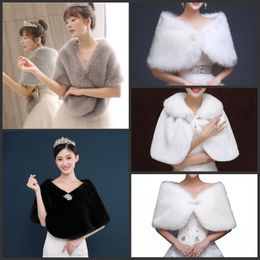 White Artificial Fur Fur Wrap Bridal Faux Fur Cape For Weddings On