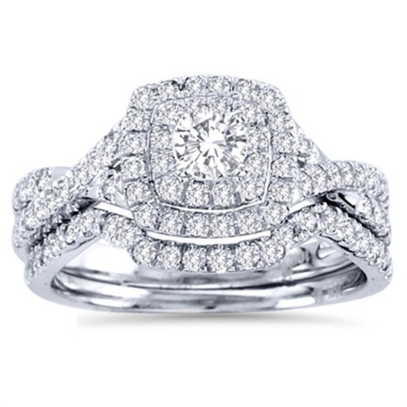 1 10ct Cushion Diamond Halo Engagement Ring Set 10k White Gold Etsy