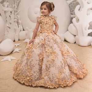 Gold Flower Girl Dress Luxury Applique Princess Pageant Birthday
