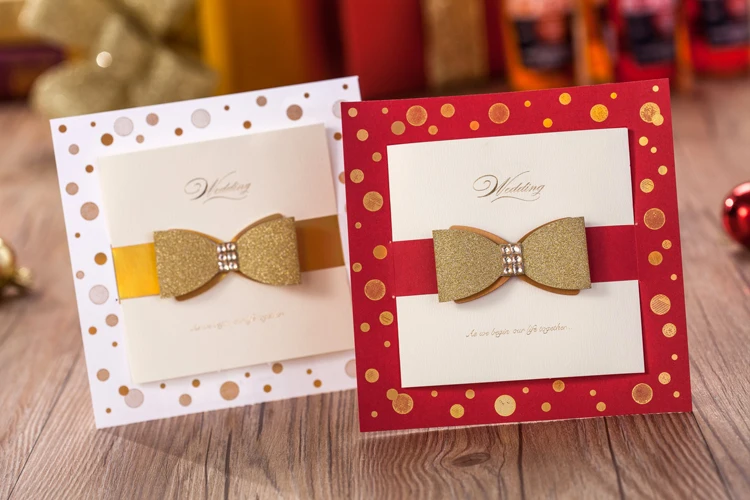 50pcs Set Design Cartoon White Bow Decorative Wedding Invitations