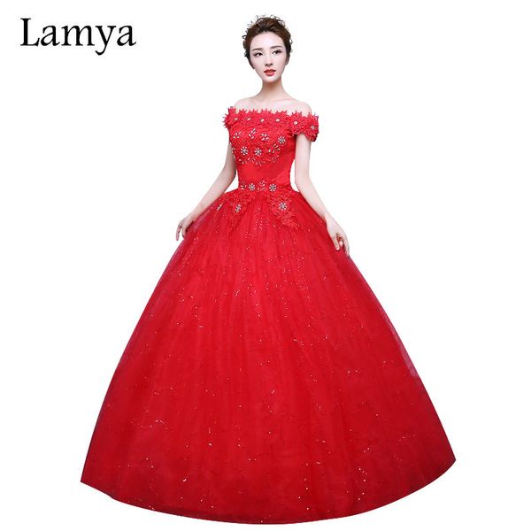Wholesale Fashionable Red Lace Off The Shoulder Wedding Dress