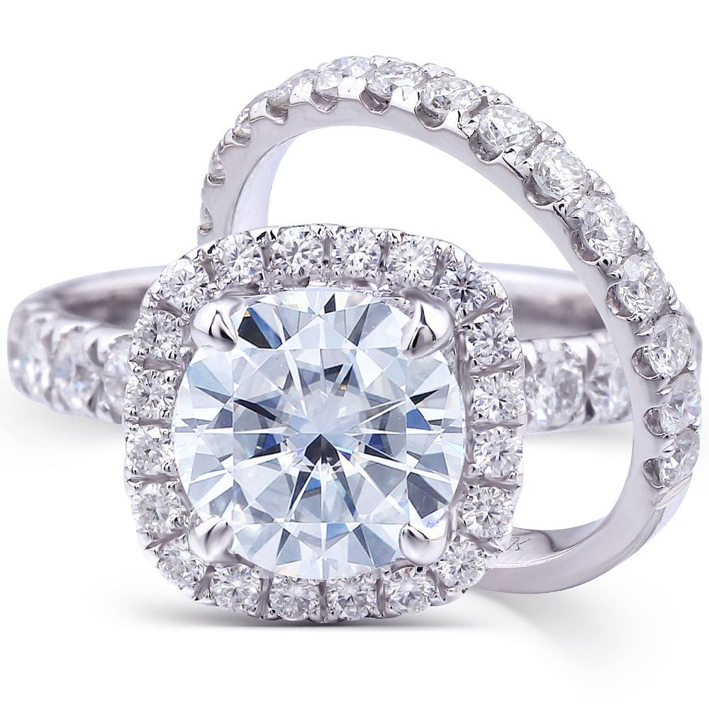 3 Ct Diamond Engagement Wedding Cushion Halo Trio Wedding Ring Set