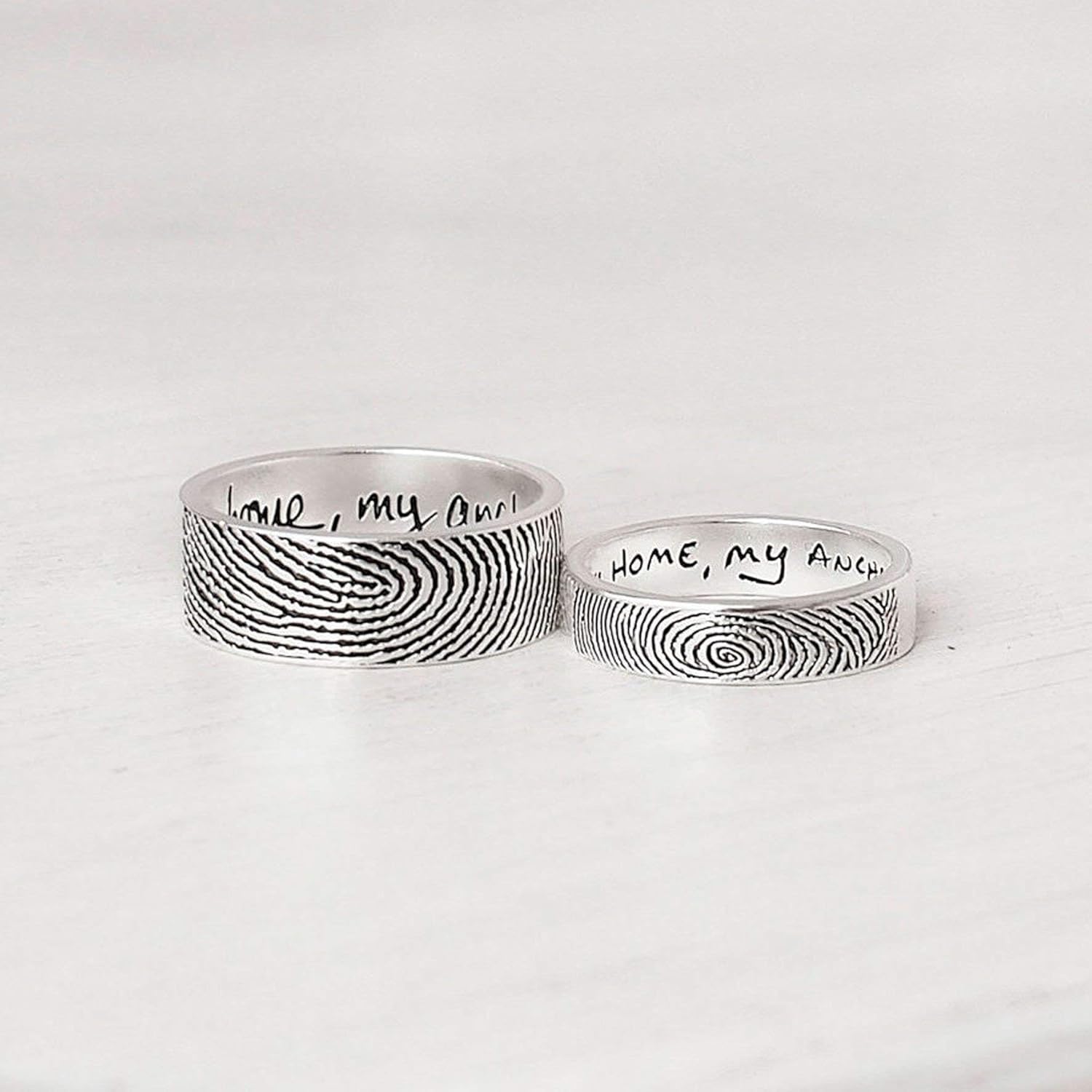 Each piece of jewelry is handmade featuring the fingerprint of your loved one. Available in sterling silver 14k yellow gold 14k white gold 14k rose gold stainless steel and platinum. Leave a lasting impression with a fingerprint wedding band from larson jewelers.