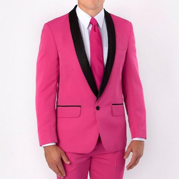 Hot Pink Wedding Groom Tuxedos Black Shawl Lapel Two Piece Custom