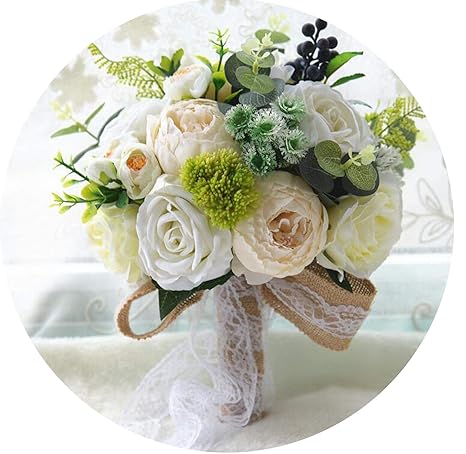 New Purple White Wedding Bouquet Handmade Artificial Flower Rose
