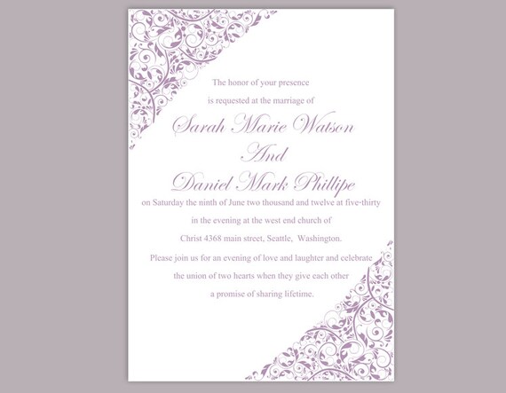 Elegance Wedding Invitation Purple Wedding Template Shop