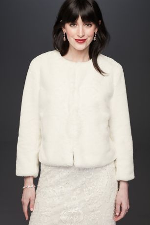 Faux Fur 3 4 Sleeve Open Front Cropped Jacket David S Bridal